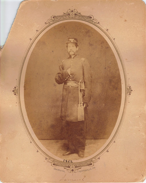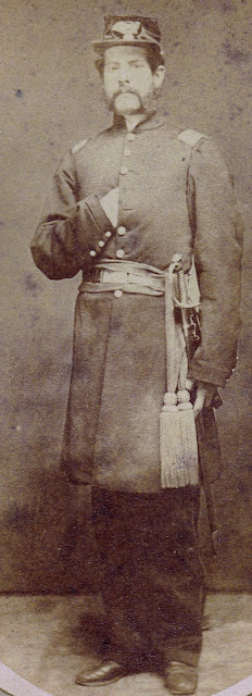 Sometimes many months will pass, sometimes even a year or more, before I happen upon, discover, stumble over, locate, or be sent or directed to a "new" image of a 48th Pennsylvania soldier--or at least one I have never seen before--but lately, well, a number have been revealed; indeed, a relatively good number over the past year or so. Some have been identified, such as Lt. Michael Kistler, Private James Dempsey, and Private Henry Jenkins. Others, unidentified. It is always a great thrill for me, having studied this regiment for so long--having pored over the rosters and muster rolls so many, many times--to see a "new" face from the regiment, to go along with name. As I have written many times before, this is not a very common thing, or at least not as common as one may suppose or assume. Indeed, after more than twenty years of actively seeking images of 48th Pennsylvania soldiers, I have located approximately 200. That's 200 out of the 1,860 men who served in the unit, or just 11%. Well, just a few days ago, Mr. Bill Clark very kindly shared with me via this blog his ancestral/family genealogy page, which includes biographical data and even an image of his 48th PA ancestor, Captain W.W. Potts, of Company D.